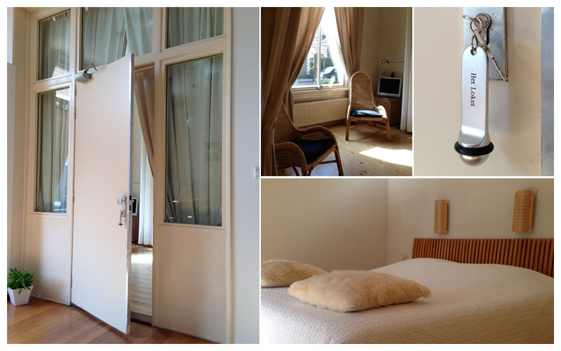 Deze zeer ruime tuingerichte kamer was vroeger planningsruimte en kantine voor de postbodes. De kamer is voorzien van eigen douche, toilet, dubbele wastafels, een comfortabel tweepersoons bed en een flat-screentelevisie.